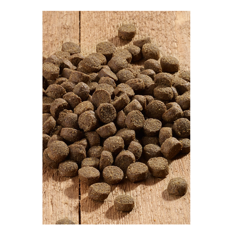 Meso i nusproizvodi životinjskog porijekla (brašno od peradskog mesa, brašno od janjetine), žitarice (ječam), nusproizvodi od povrća (celuloza, kriške sušene šećerne repe), riba i riblji nusproizvodi (brašno od morske ribe), ulja i masti, povrće (mrkva*), sjeme (laneno sjeme), jaja i proizvodi od jaja (cijelo jaje u prahu), minerali, kvasac*, alge*, bilje*, ekstrakt kvasca* (izvor manan oligosaharida), zelena dagnja* (Perna canaliculus).
