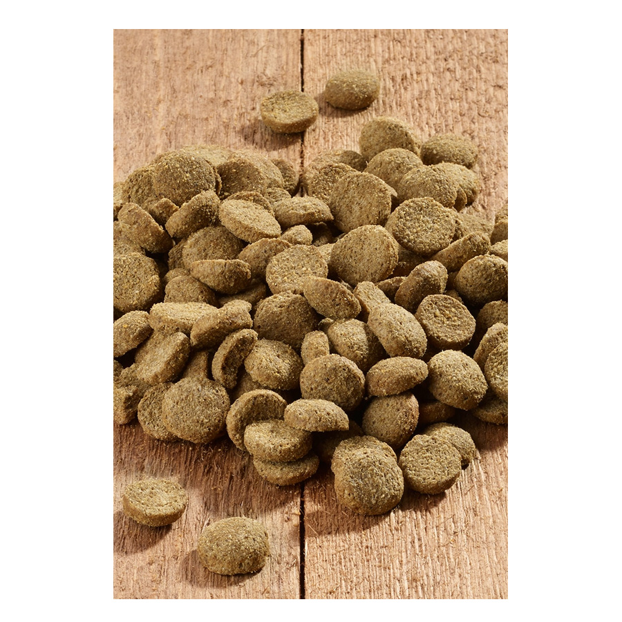 Meso i nusproizvodi životinjskog porijekla (brašno od peradskog mesa, zečetine), povrće (krumpir*, mrkva*), žitarice (ječam), nusproizvodi od povrća (celuloza, kriške sušene šećerne repe), riba i riblji nusproizvodi (brašno od lososa), sjeme (laneno sjeme), ulja i masti, ekstrakt kvasca* (izvor mananoligosaharida), zelenousna školjka* ( Perna canaliculus), bilje*.